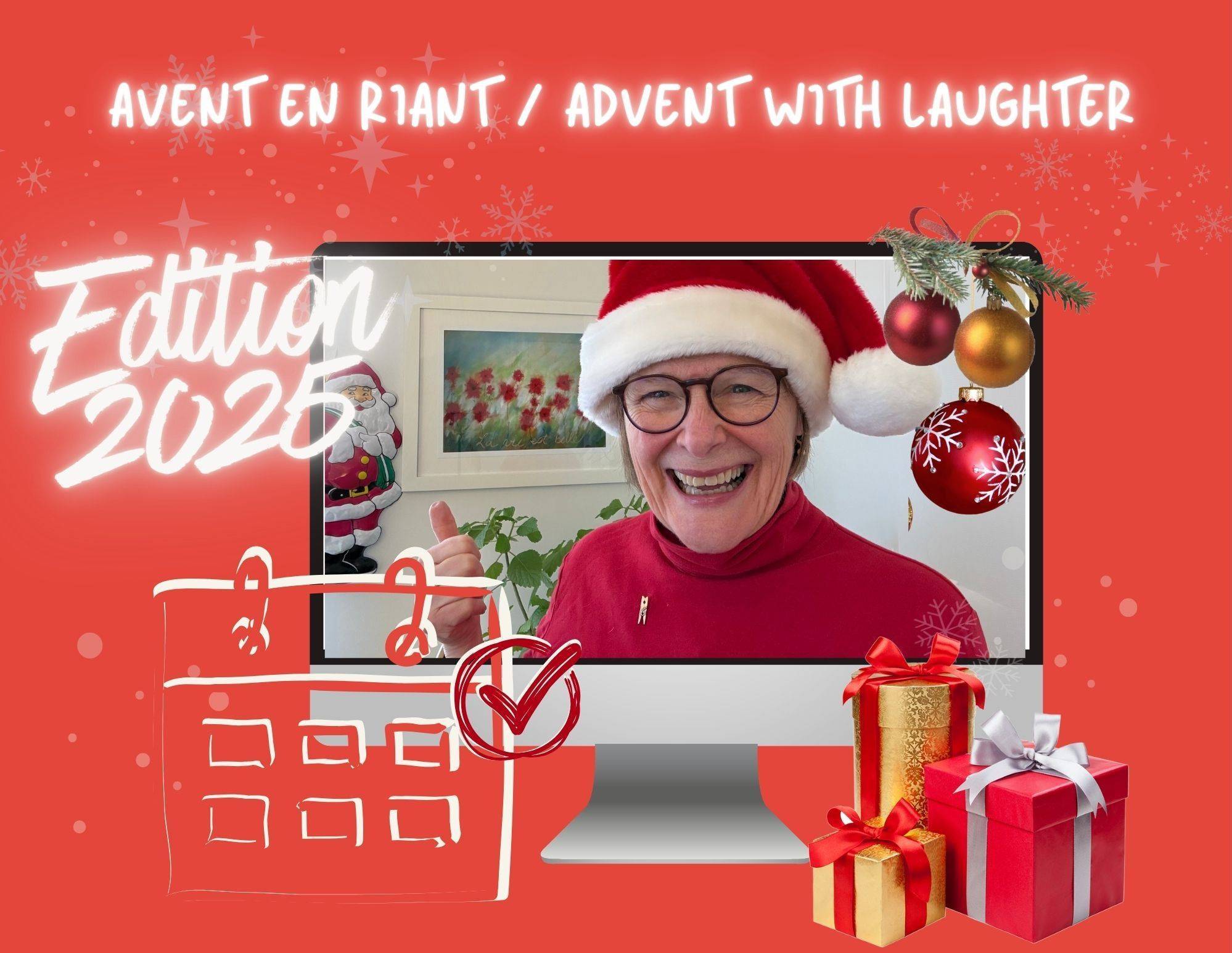 Je vous donne rendez-vous vers la meilleure version de vous pour l'Avent! Rejoignez moi chaque jour, pendant 25 jours, à midi (18h en France) sur notre lien zoom pour 15 minutes de rire!